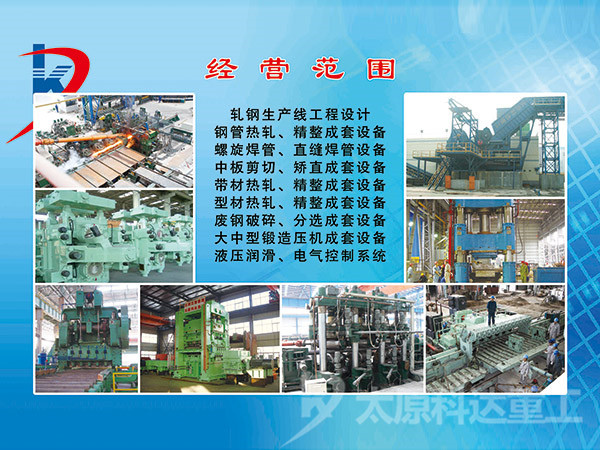 自公司成立以來已取得了多項工程設計業(yè)績。河北滄州力通聯無縫鋼管有限公司φ219無縫鋼管工程工廠設計;力通聯無縫鋼管有限公司φ273熱處理線工廠設計及設備設計供貨;江蘇常寶普萊森φ140無縫鋼管工程工廠設計及設備設計供貨;江蘇常寶150三輥穿孔機、12機架微張力減徑機、高精度十輥矯直機、鍋爐管精整區(qū)域自動生產線、AVS打頭機、雙線三線五線系列自動冷拔機等工藝成套設計供貨;磐石鋼管有限責任公司90熱軋生產線工廠設計供貨等。