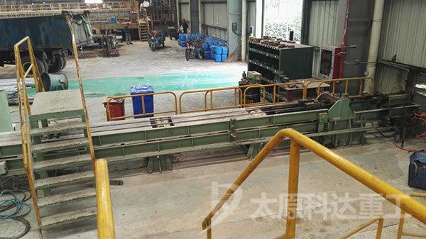 工藝流程:毛管成捆吊至上料平臺,上料裝置根據(jù)拉拔模式自動(dòng)取料放入冷撥機(jī)穿棒平臺,穿入(芯棒)裝置自動(dòng)將待冷撥的鋼管穿入芯棒,芯棒臺下降,芯棒和鋼管同時(shí)前進(jìn)到撥管工位,撥制小車鉗口夾住伸出??椎匿摴茴^部,小車低速啟動(dòng)-高速拔制-低速脫管,撥制結(jié)束后,撥制力消失,下料臂擺出下料,撥制小車高速返回原位,進(jìn)行下一次夾料撥制。